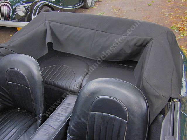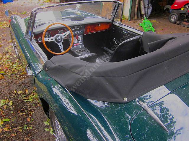 Excellent body, very nice BRG paint, very good black leather seats, new windshield and seal, very clean engine bay, all electrics work properly, overdrive clicks 'in' and 'out' quickly, rebuilt brakes, new stayfast black cloth boot cover, very good top, a very nice example.