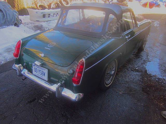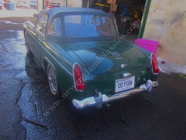 58,000 original miles, excellent body and floor, NO RUST, more than presentable BRG paint, brand new convertible top, very tidy interior (mostly new), modern stereo, full tonneau cover. Chrome is either all original and excellent or new, dash is excellent and everything works (even the heater), has the late model '10cc' 1098cc engine (with the heavier duty 2" main bearings), perfect compression (165-180 psi) and oil pressure (65 psi when hot), no smoke, twin SU carbs. It always starts instantly, runs flawlessly, and doesn't miss a beat.