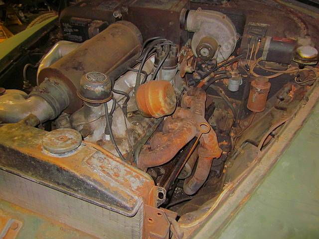 Now it appears that someone, perhaps a long time in this car's history, suspected a blown head gasket. As, in the trunk, neatly arranged, are the engine's pushrods and head bolts. But otherwise, everything looks quite 'together' in the engine bay. Even the original wiring.