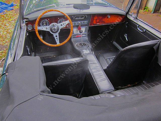 Excellent body, very nice BRG paint, very good black leather seats, new windshield and seal, very clean engine bay, all electrics work properly, overdrive clicks 'in' and 'out' quickly, rebuilt brakes, new stayfast black cloth boot cover, very good top, a very nice example.
