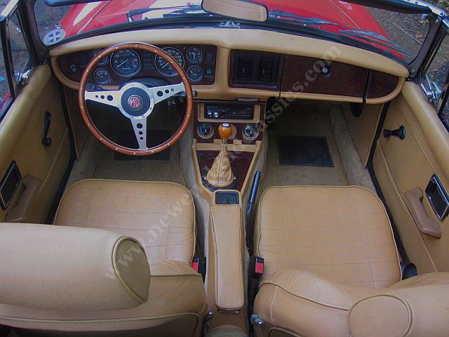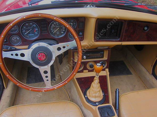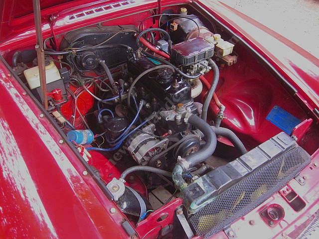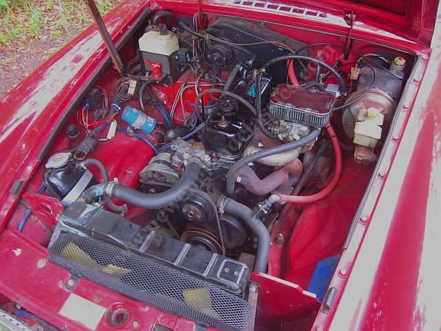 Excellent body with very nice tartan red paint, a complete chrome bumper conversion.....removed the ugly and heavy rubber bumpers, added new sheet metal, lights, eliminated and plated over the holes for the side lights, fitted a Mk I grille, new chrome bumpers, lowered the car to the pre 1975 ride height, fitted a modern 32/36 Weber DGV carb and improved exhaust manifold...........NOW a great MGB. Much better handling, performance, and (of course) exterior appearance..